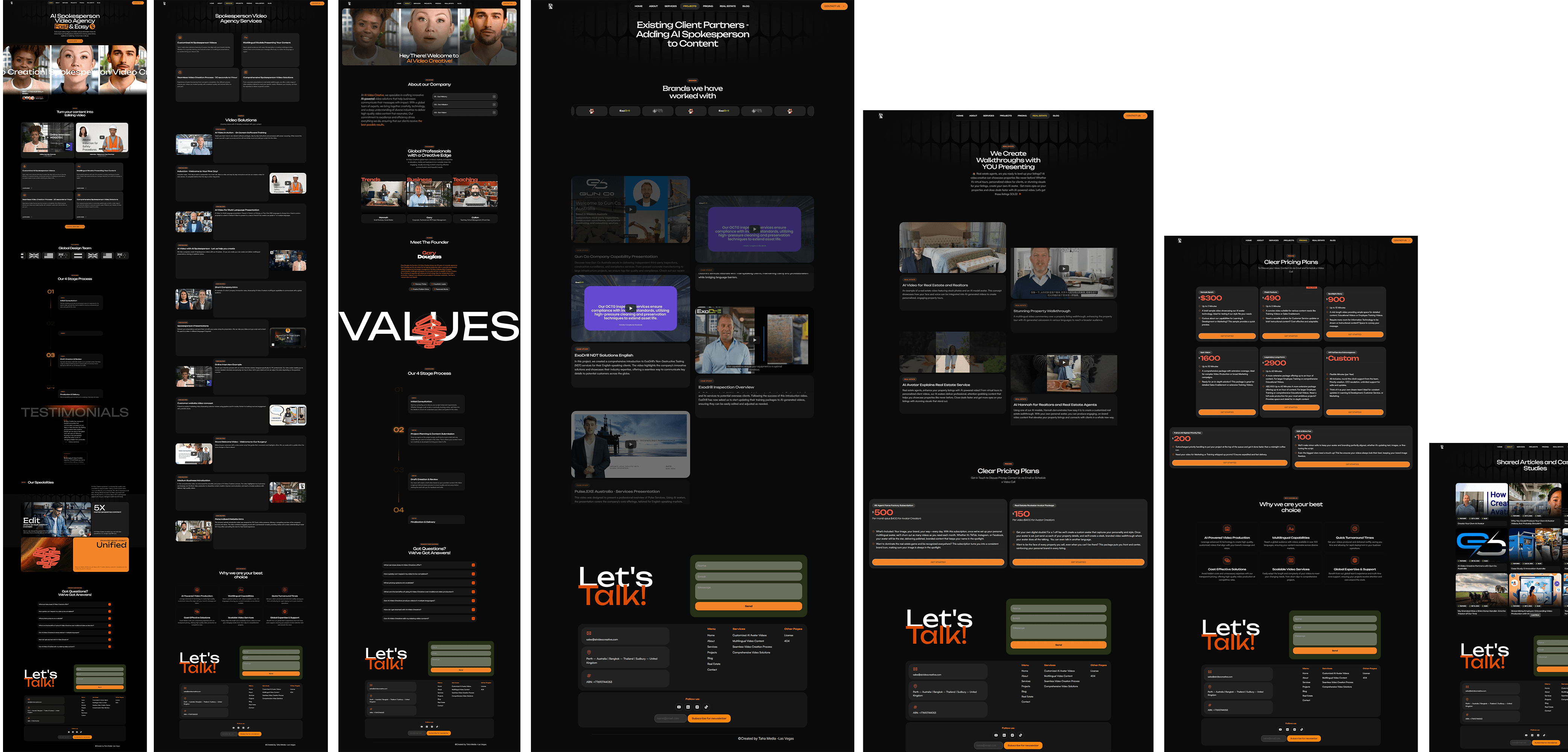 The website was built in 8 days using Framer, with a focus on integrating AI-related visuals and interactive elements to demonstrate the company’s cutting-edge capabilities. The design included a sleek, professional layout, with sections that detailed the services offered, client testimonials, and a booking page for video production packages.