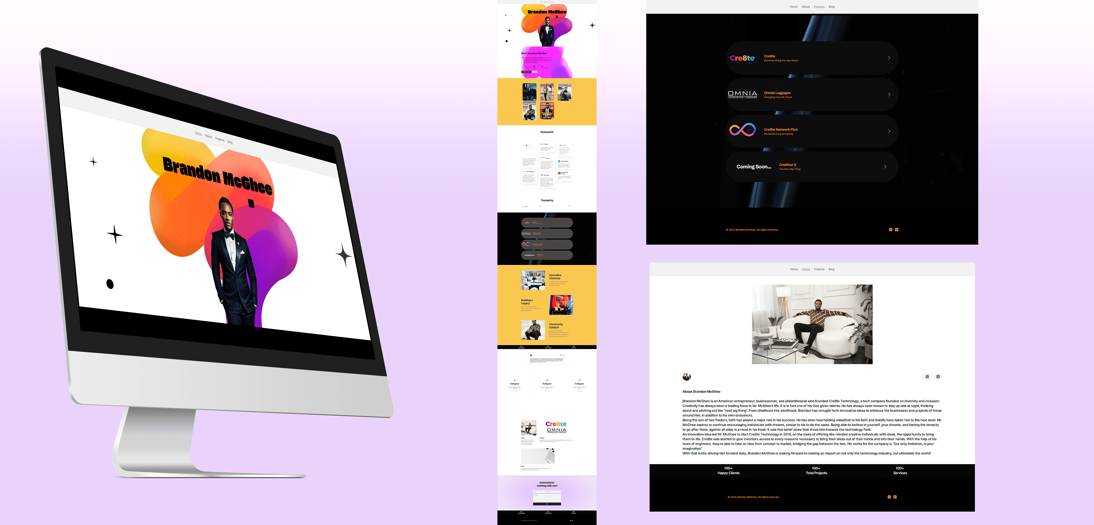 Brandon McGhee is an entrepreneur and philanthropist who founded Cre8te Technology, a tech company focused on bringing innovative ideas to life. His personal website serves as a portfolio, showcasing his career, achievements, and the journey of Cre8te Technology.